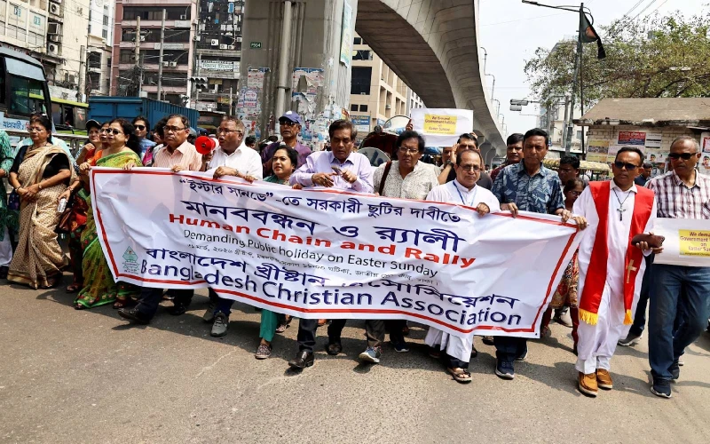 Manju Maria Palma, secretaria de The Christian Cooperative Credit Union Ltd. en Daca, una organización con 48.000 miembros, también participó en la cadena humana. Su testimonio reforzó la centralidad de la fecha: “Cristo resucitó en este día; es de una importancia inmensa para nosotros. Si se nos concede este feriado, no solo beneficiará a la comunidad cristiana, sino que también brindará una oportunidad para que nuestros hermanos y hermanas de otras religiones comprendan la magnitud y el significado profundo de este día”.